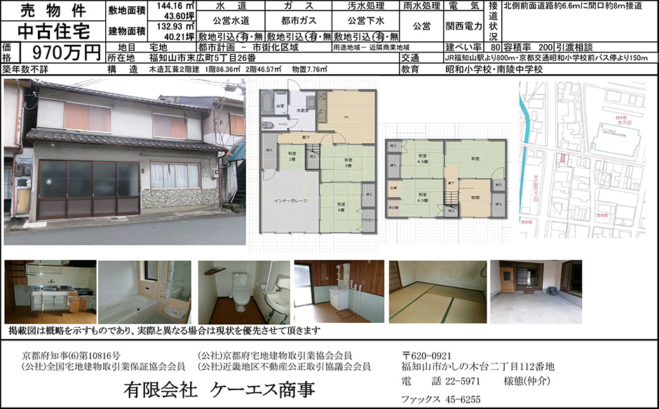 【中古住宅】福知山市末広町 970万円